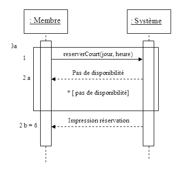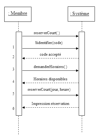 Faites les diagrammes de séquence système pour ces deux scénarios du cas d’utilisation « réserver un court ».