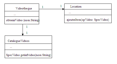 locVideo est un attribut de type Location de la classe Videotheque. L’association entre Videotheque et Location avec navigabilité de Videotheque à Location est implémentée par cet attribut.